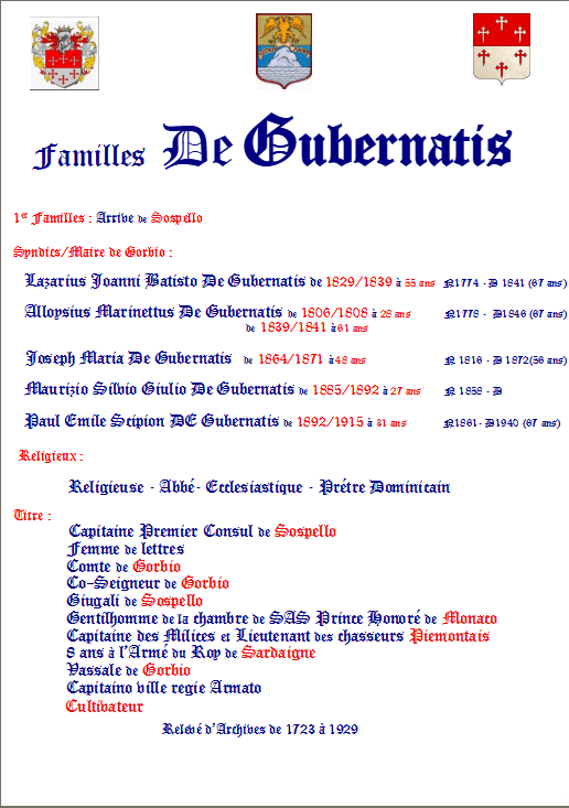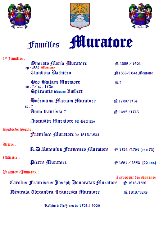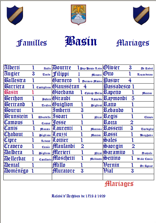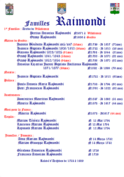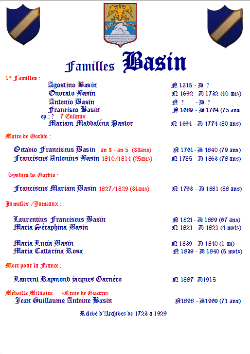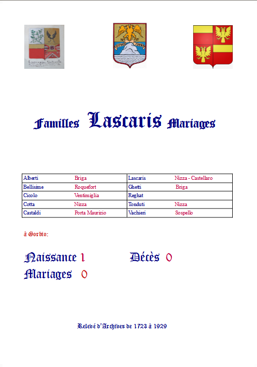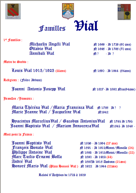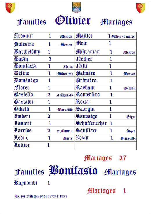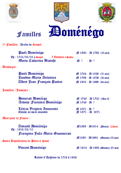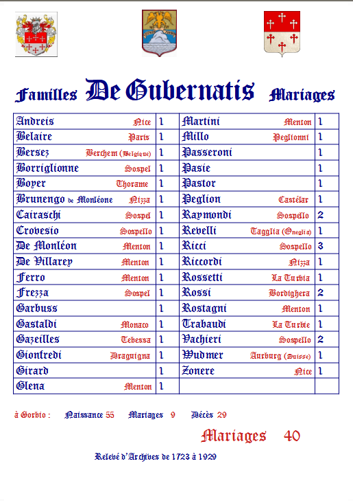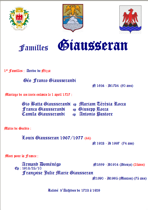 Découvrez ici toute la généalogie des familles de Gorbio : mariages, naissances, décés... Pour des informations plus détailées, n'hésitez pas à venir consulter les documents sur place.