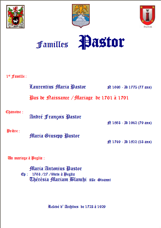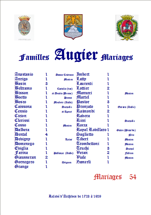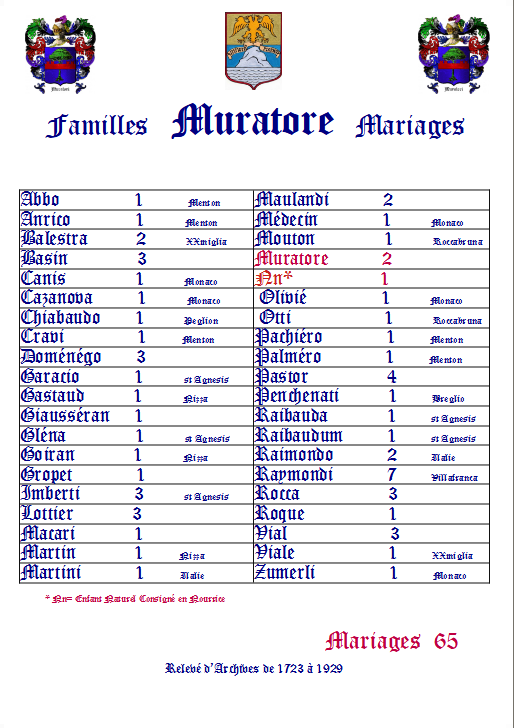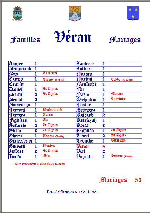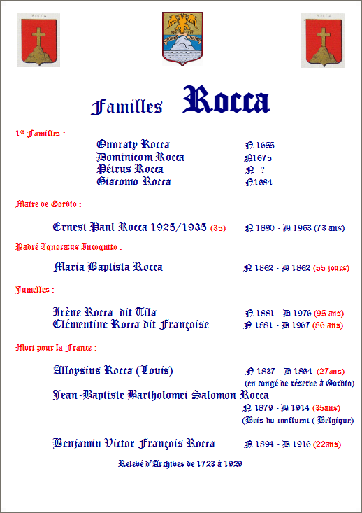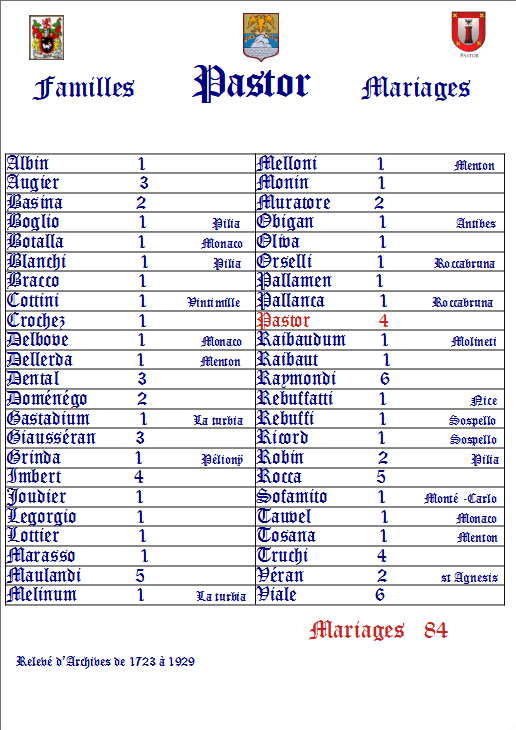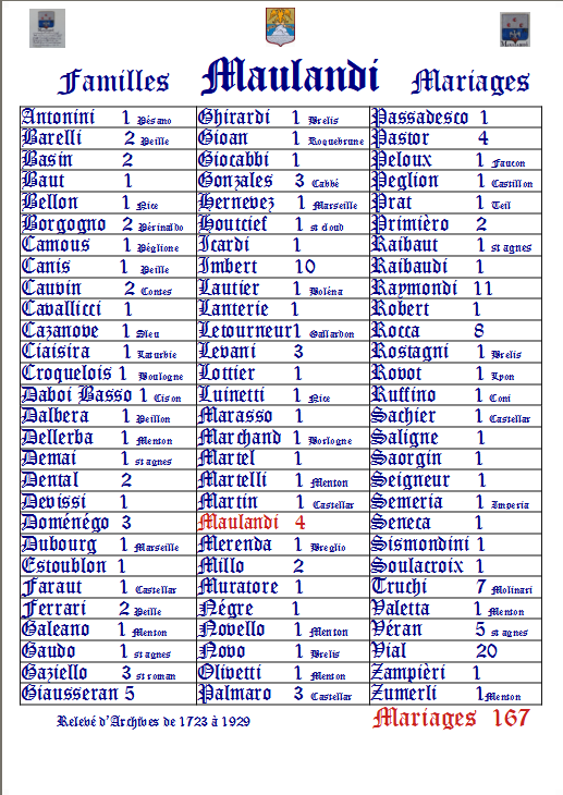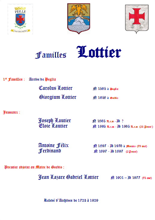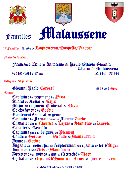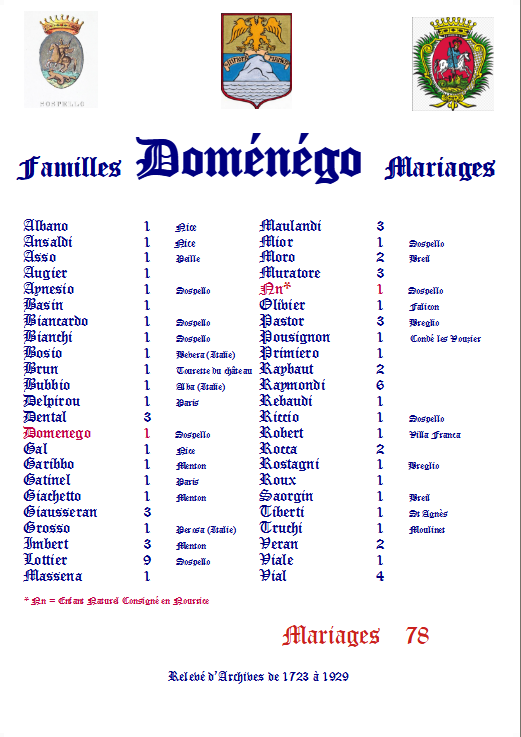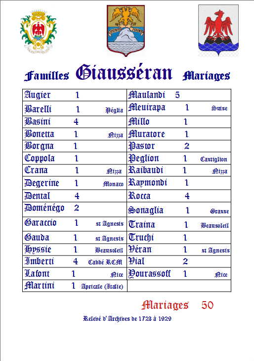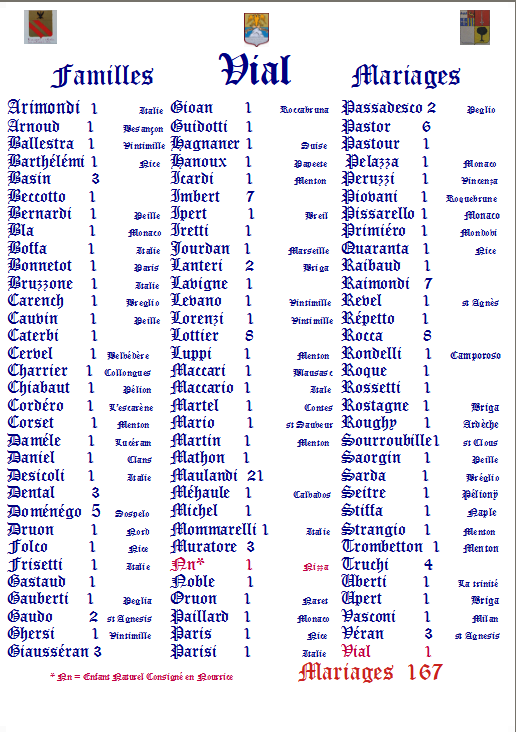 Découvrez ici toute la généalogie des familles de Gorbio : mariages, naissances, décés... Pour des informations plus détailées, n'hésitez pas à venir consulter les documents sur place.